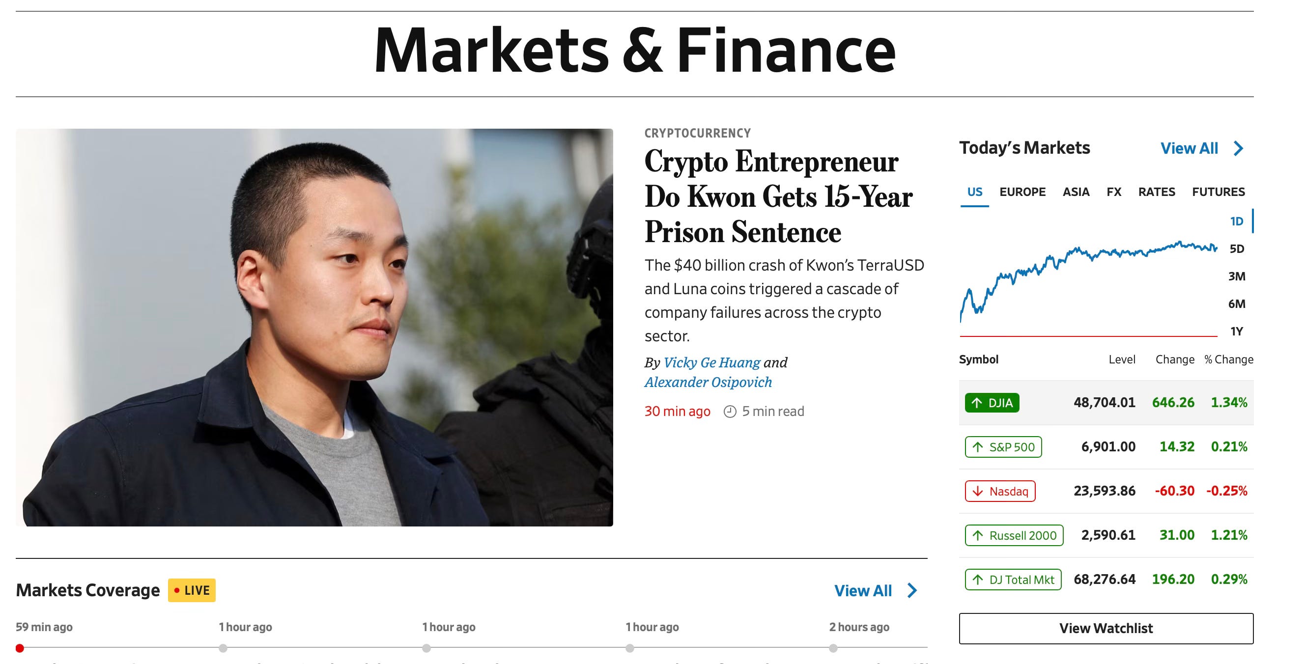 WSJ cannot afford to misinform us : when there is this much money involved, misinformation is not going to go down well with the Street. WSJ Markets and Finance is home base