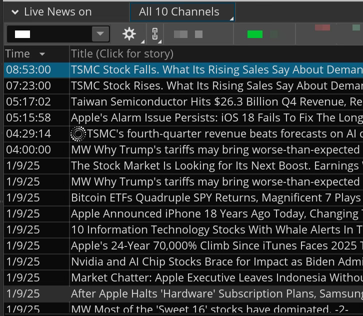 Thinkorswim Desktop Newsfeed - real time updates keep flowing in, with each trading minute